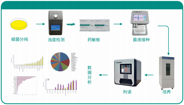 1、檢驗原理:通過比色的方法檢測細菌對生化孔各種碳源(或氮源)、酶等利用情況,通過比濁及比色方法檢測細菌在藥敏孔的生長情況,采用專業的圖像采集技術,自動讀取測試板的生化及藥敏結果